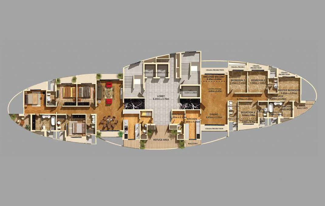 Splendid green views with an exquisite landscaped podium level offer a host of