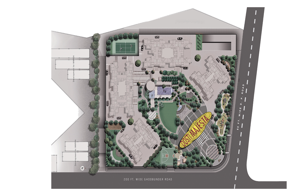 Dosti Majesta offers a modern lifestyle with various amenities that one needs to lead the privileged life. With a magnificent ready to use 28,000 sq.ft. *clubhouse, it is a 28 storey architectural landmark with an elliptical shape built on a curvilinear design format with only two exclusive 4 BHK Homes on every floor.The beautifully designed lobbies provide privacy to everyone and the 4 tier security across the complex, assures safety to your friends and family.The stunning façade provides visibility from every corner of Thane, making it an iconic structure and a remarkable landmark for the city skyline.